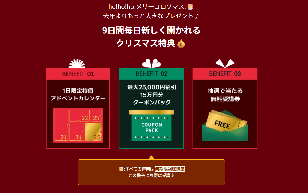 | 料金(税込) | 講座ごとに異なる 19,000~70,000円/無期限 |