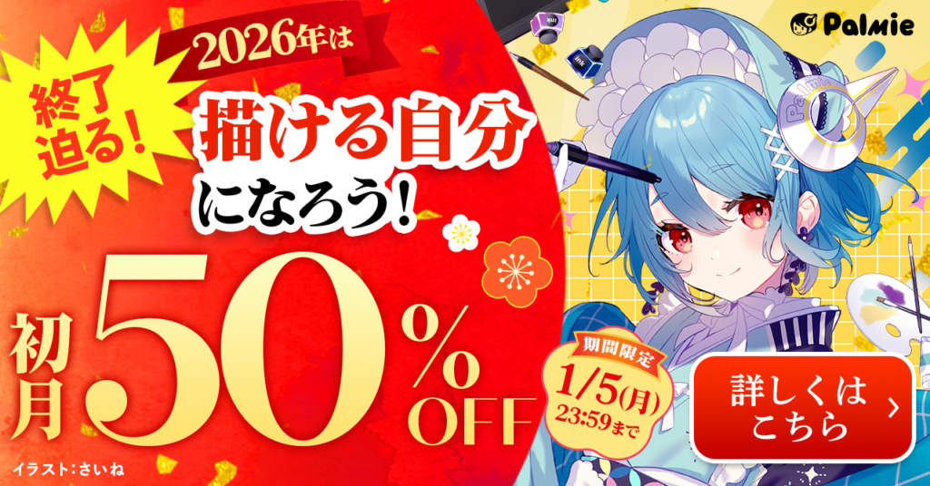 オンラインで学べるイラスト講座『パルミー』。お得なキャンペーンを不定期に開催しています。