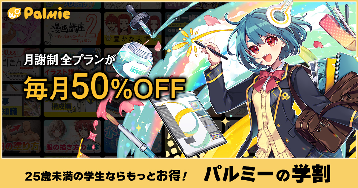 パルミーは、キャラクターの描き方や背景の描き方など基本から丁寧に学べるイラスト・マンガ講座です。初心者歓迎のサイトなので初めての方でも安心して利用できます。